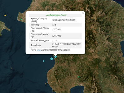 Σεισμική δόνηση μεγέθους 3, 5 βαθμών της κλίμακας Ρίχτερ σημειώθηκε πέντε λεπτά μετά τη μία τα ξημερώματα στην Ηλεία