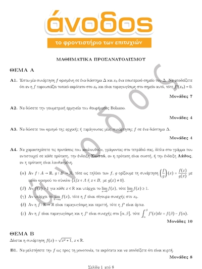 Δείτε τα προτεινόμενα θέματα για το μάθημα: Μαθηματικά Προσανατολισμού