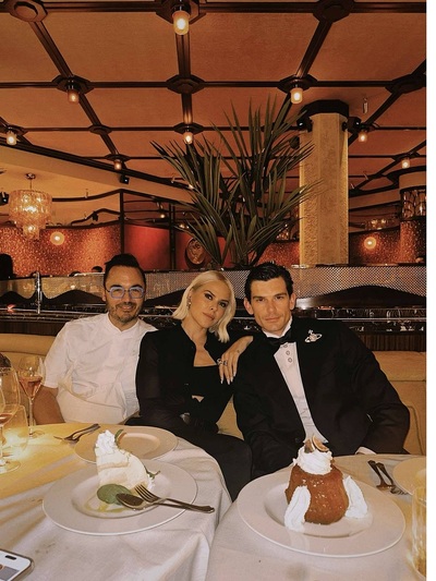 Σε έξοδό τους για φαγητό συνάντησαν τον ονομαστό Έλληνα chef Γιάννη Κιορόγλου, ο οποίος διαπρέπει στις Κάννες -έχει επιμεληθεί τα μενού στα εστιατόρια La Pettite Maison, La Guerite, La Grande κ.α. Μάλιστα, πόζαραν μαζί ενώ στο διπλανό τραπέζι δειπνούσε ο super star του Χόλιγουντ, Λεονάρντο ντι Κάπριο. Την επόμενη μέρα το ίδιο στέκι επέλεξαν η pop diva Ριάνα και το super model Ναόμι Κάμπελ.