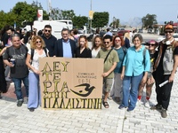 Κατά τη διάρκεια της συγκέντρωσης ακούστηκαν συνθήματα υπέρ της ειρήνης, της ελευθερίας και της ανεξαρτησίας της Παλαιστίνης.