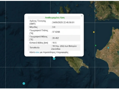 Σεισμική δόνηση 3 Ρίχτερ καταγράφηκε λίγο μετά τη 1 τα ξημερώματα της Κυριακής στα ανοιχτά της Ζακύνθου.