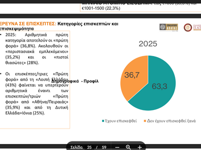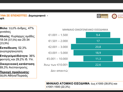 Κύριες δεξαμενές επισκεπτών: Αθήνα (56,6%), Θεσσαλονίκη (12,3%)