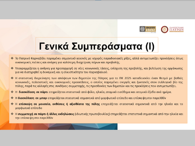 * Η συντριπτική πλειονότητα (91,7%) των αδιάφορων δημοτών δεν επιθυμεί την κατάργηση του θεσμού, γεγονός που δείχνει την ευρεία κοινωνική αποδοχή του Πατρινού Καρναβαλιού.
