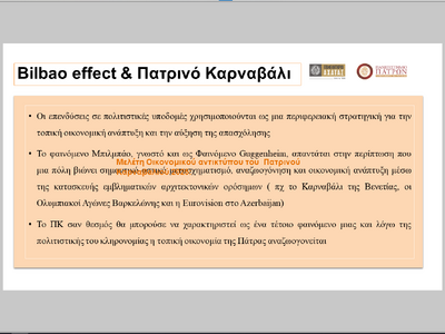 Παρουσιάστηκαν μελέτες του Πανεπιστημίου Πατρών για την οικονομική, κοινωνική και πολιτιστική επίδραση του θεσμού