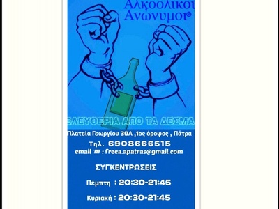 «Αυτή τη στιγμή στην Πάτρα, υπάρχουν δυο ομάδες και ο αριθμός των αλκοολικών σε αυτές δεν είναι πολύ μεγάλος. Είναι περίπου 30 άτομα. Που δεν έρχονται όλοι συνέχεια. Για όποιον θέλει να έρθει γίνεται κάθε πρώτη Κυριακή του μήνα μια ανοιχτή συγκέντρωση. Επίσης, έχουμε συγκεντρώσεις κάθε Πέμπτη και Κυριακή (20:30-21:45)».