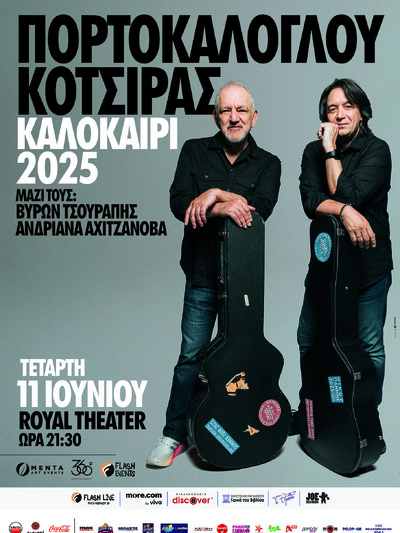 Δύο ιδιαίτερα αγαπητοί καλλιτέχνες, ο Νίκος Πορτοκάλογλου και ο Γιάννης Κότσιρας περιοδεύουν παρέα και την Τετάρτη 11 Ιουνίου 2025 θα είναι στην Πάτρα για να δώσουν μία συναυλία στο Royal theater - Αύλειος χώρος, στην Ακτή Δυμαίων.