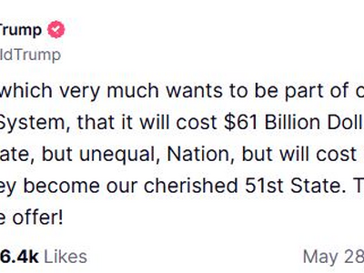 «Θα κοστίσει 61 δισεκατομμύρια δολάρια αν παραμείνουν ξεχωριστό, αλλά άνισο έθνος, αλλά θα κοστίσει μηδέν δολάρια αν γίνουν η πολύτιμη 51η Πολιτεία μας. Το σκέφτονται!», έγραψε.