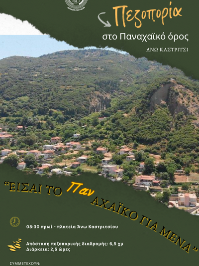 i. Κυριακή 1 η Ιουνίου “ΕΙΣΑΙ ΤΟ πανΑΧΑΪΚΟ ΓΙΑ ΜΕΝΑ!!” Πεζοπορία στο Παναχαϊκό όρος (Άνω Καστρίτσι – Αγ. Βαρβάρα – Ισώματα – Άγιος Γεώργιος – Άνω Καστρίτσι) ώρα εκκίνησης 08.30πμ