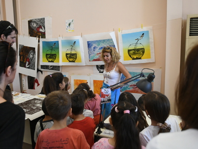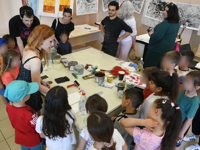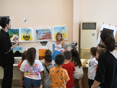 Με την καθοδήγηση των εικαστικών οι μικροί μαθητές έκαναν τις δικές τους δημιουργίες. Οι καλλιτέχνες απάντησαν σε ερωτήσεις και παρότρυναν τα παιδιά να μπουν από μικρή ηλικία στον κόσμο της δημιουργίας.