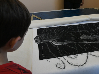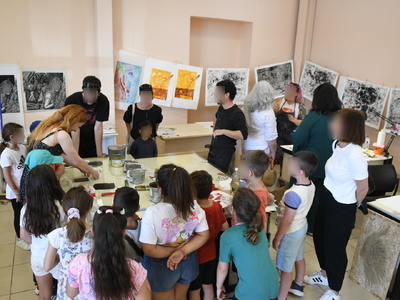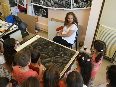Οι δέκα χαράκτες που συμμετέχουν στο συμπόσιο «μύησαν» στην τέχνη της εγχάραξης δεκάδες παιδιά τα οποία επισκέφτηκαν το χώρο του συμποσίου το οποίο πραγματοποιείται στο πρώην κτίριο ΔΕΥΑΠ στην Ακτή Δυμαίων 48.