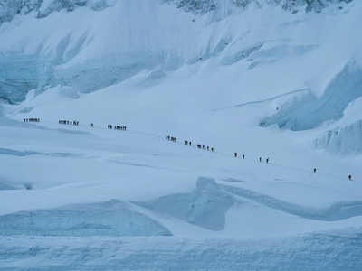Λόγω των περιορισμένων περιόδων με καλό καιρό κοντά στην κορυφή, μεγάλος αριθμός ορειβατών παρατάχθηκε δεμένος στο μοναδικό σχοινί ασφαλείας, σε ένα φαινόμενο γνωστό ως «κυκλοφοριακή συμφόρηση του Έβερεστ».