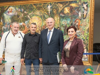 Η ιστορικός της τέχνης και επιμελήτρια της Εικαστικής Έκθεσης που φιλοξενήθηκε στο Φουαγιέ του Πολεμικού Μουσείου κα Αννίτα Πατσουράκη παρουσίασε τα έργα της Εικαστικής Έκθεσης με θέμα: «Το νικάν εαυτόν πασών νικών πρώτη και αρίστη» και αναφέρθηκε στα εκθέματα των τριών ιδιωτικών συλλογών των κ.κ. Φώτη Ζάχου, Κυριάκου Τσιφλάκου, της οικογένειας Μιχαήλ Σκούλλου και συνέδεσε τα εκθέματα με τη μέγιστη παρουσία και δράση πολιτιστικής διπλωματίας που πρεσβεύουν οι επιλεγμένοι καλλιτέχνες σε Ιαπωνία, Κίνα και Κορέα σε σχέση με τα τιμώμενα αθλήματα.