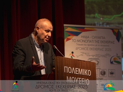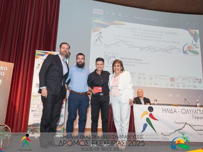 Η εκδήλωση έκλεισε με το μήνυμα του Δημάρχου Ήλιδας κ. Χρήστου Χριστοδουλόπουλου ο οποίος τόνισε «πρόκειται για μια διοργάνωση με ιδιαίτερο συμβολισμό και βαρύτητα, καθώς αποτελεί καρπό της πολυετούς και αδιάλειπτης προσφοράς σας, που ξεκίνησε με τη δημιουργία του «Μονοπατιού της Εκεχειρίας» στην Ηλεία και συνεχίζεται κάθε χρόνο με τον συμβολικό «Δρόμο της Εκεχειρίας».