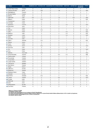 42 Μαλίν Βέλγιο 0 0 0 1 0 1 0 2