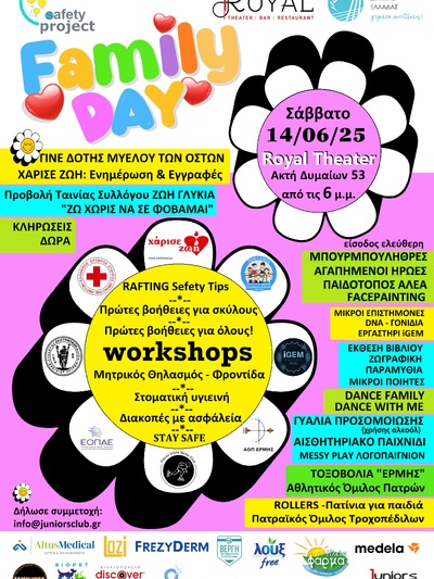 Το Family Day επιστρέφει δυναμικά και υπόσχεται μια αξέχαστη εμπειρία για μικρούς και μεγάλους! Ο σκοπός; Ιερός! Να μεγαλώσει η λίστα των Εθελοντών Δοτών Μυελού των Οστών.