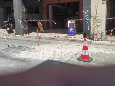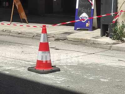 Το πρωί στη συμβολή των οδών Κορίνθου και Αγίου Νικολάου τμήματα τσιμέντου αποκολλήθηκαν από πολυκατοικία και έπεσαν στο οδόστρωμα.