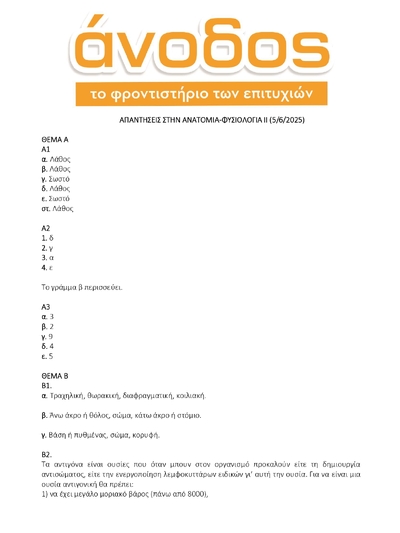 Δείτε τις απαντήσεις των θεμάτων για το μάθημα Ανατομία-Φυσιολογία ΙΙ
