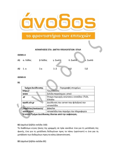 Δείτε τις απαντήσεις των θεμάτων για το μάθημα Δίκτυα Υπολογιστών