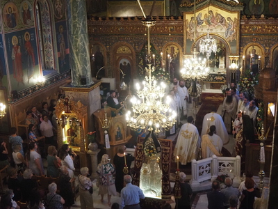 Στις ακολουθίες χοροστάτησαν ο Σεβασμιότατος Μητροπολίτης Πατρών κ.κ. Χρυσόστομος (το πρωί της Δευτέρας) και ο Θεοφιλέστατος Επίσκοπος Κερνίτσης κ. Χρύσανθος (το απόγευμα της Δευτέρας), ο πρωτοσύγκελος της Ι.Μ. Πατρών π. Αρτέμιος καθως και πλήθος ιερέων ...