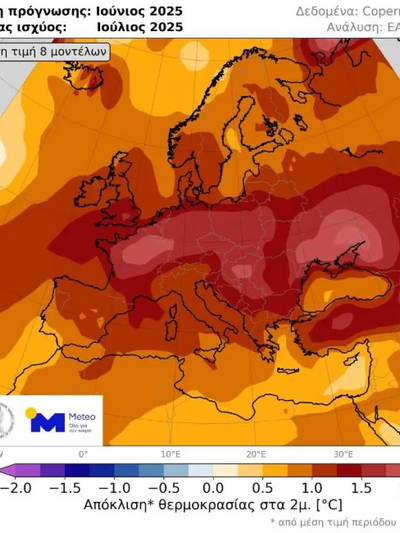 Μακροπρόθεσμη πρόγνωση για την μέση θερμοκρασία του Ιουλίου 2025