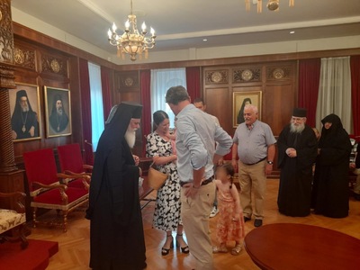 Το απόγευμα, στην Αίθουσα του Θρόνου, ο σεβασμιότατος Μητροπολίτης κ. Ιερώνυμος δέχθηκε τις εόρτιες ευχές εκπροσώπων της Εκκλησίας, της Πολιτείας και του λαού. Συγκεκριμένα προσήλθαν ο Μητροπολίτης Μαντινείας και Κυνουρίας κ. Επιφάνιος, ο Αρχιγραμματεύς της Ιεράς Συνόδου της Εκκλησίας της Ελλάδος Πανοσιολογιώτατος Αρχιμανδρίτης π. Ιωάννης Καραμούζης, ο Υφυπουργός Πολιτισμού κ. Ιάσων Φωτήλας, ο Βουλευτής Αχαΐας και πρώην Υφυπουργός Εξωτερικών κ. Ανδρέας Κατσανιώτης, ο Δήμαρχος Αιγιαλείας κ. Παναγιώτης Ανδριόπουλος, ο Πρόεδρος της Μείζονος Αντιπολίτευσης κ. Παναγιώτης Γούτος, μέλη του Δημοτικού Συμβουλίου, Κληρικοί, Μοναχοί και Μοναχές, καθώς και πλήθος χριστιανών της Ιεράς Μητροπόλεως.