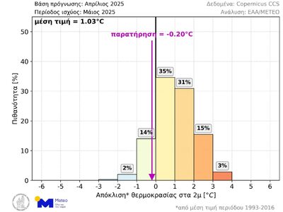 Αξιολόγηση πρόγνωσης για την μέση θερμοκρασία Μαΐου 2025