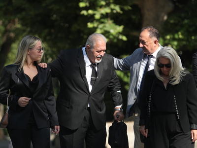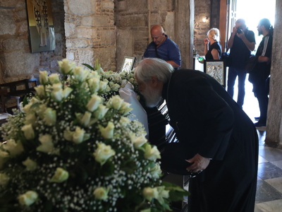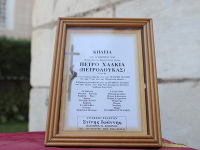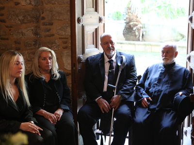 Η οικογένεια του Πετρολούκα Χαλκιά έδωσε το «παρών» στην εκκλησία για να τιμήσει τον δεξιοτέχνη του κλαρίνου, ανάμεσά τους και ο γιος του Γιάννης, ο οποίος βρέθηκε με πατερίτσα στον χώρο.