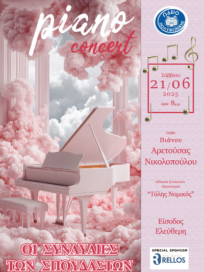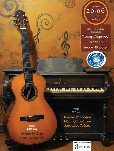Τέλος το Σάββατο 21 Ιουνίου, την ίδια ώρα στην αίθουσα συναυλιών θα πραγματοποιηθεί η 9η συναυλία των Σπουδαστών του