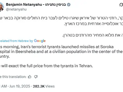 «Σήμερα το πρωί, οι τρομοκράτες τύραννοι του Ιράν εκτόξευσαν πυραύλους στο νοσοκομείο Soroka στη Μπιρσίβα και σε έναν άμαχο πληθυσμό στο κέντρο της χώρας. Οι τύραννοι της Τεχεράνης θα πληρώσουν ακριβά το τίμημα του χτυπήματος», έγραψε ο Νετανιάχου στην ανάρτησή του.