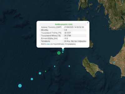 Νέος σεισμός 3,9 βαθμών της κλίμακας ρίχτερ σημειώθηκε το απόγευμα του Σαββάτου ανοιχτά της Κεφαλονιάς.