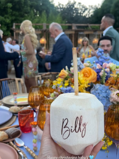 Η ευχάριστη είδηση διέρρευσε μέσα από τα social media. Το ζευγάρι αποφάσισε να κρατήσει ιδιωτικές κάποιες λεπτομέρειες του μυστηρίου και έτσι δεν είναι γνωστή η εκκλησία της βάπτισης. Στη συνέχεια, ακολούθησε δεξίωση στη Βουλιαγμένη. Η Κωνσταντίνα Σπυροπούλου αναδημοσίευσε στον προσωπικό της λογαριασμό στο Instagram, φωτογραφίες και βίντεο που ανάρτησαν οι καλεσμένοι της.