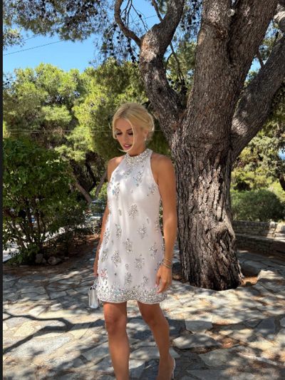 Σε ορισμένα στιγμιότυπα, η Κωνσταντίνα Σπυροπούλου πόζαρε με τον Βασίλη Σταθοκωστόπουλο και σε άλλα μόνη της ή με καλεσμένους τους. Η ίδια επέλεξε να βάλει δύο διαφορετικά φορέματα στη βάπτιση του παιδιού της, ένα λευκό με ασημί πέτρες και ένα στο χρώμα του δέρματος με πολύχρωμα στοιχεία.