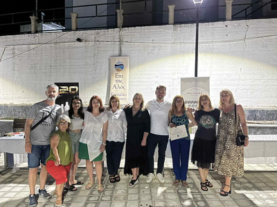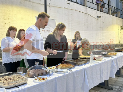 Παρουσιάστρια στην εκδήλωση ήταν η Ράνια Τζαβάρα, πρόεδρος του Πολιτιστικού Συλλόγου “Επί της Αλός”, που διακρίνεται στη φωτο μαζί με τους σεφ ζαχαροπλαστικής, Άκη Σμαρνάκη και η Ειρήνη Μπουρνά.