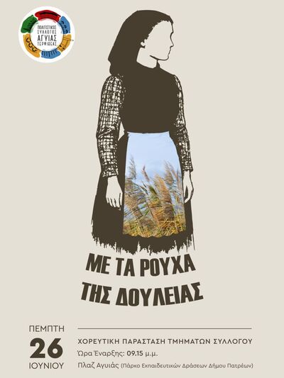 *Η παράσταση με τίτλο «Με τα ρούχα της δουλειάς» είναι μία χορευτική παράσταση των τμημάτων του συλλόγου Αγυιάς Τερψιθέας Πατρών.