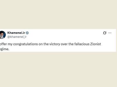 Σε ανάρτηση στο Χ ο Αλί Χαμενεΐ ανέφερε ότι «εκφράζω τα συγχαρητήρια μου για τη νίκη επί του παραπλανητικού σιωνιστικού καθεστώτος».