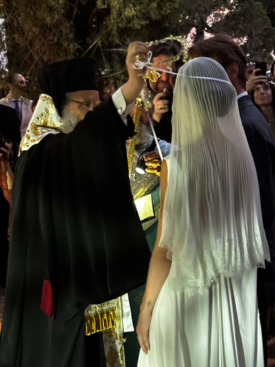 Οι καλεσμένοι μεταφέρθηκαν με σκάφη στο πανέμορφο νησάκι, όπου τις τελευταίες μέρες έγιναν όλες οι προετοιμασίες για το μυστήριο. Την πρώτη φωτογραφία από τον γάμο «διέρρευσε» ο ξάδερφος του γαμπρού, Τεό Νιάρχος και σε αυτήν διακρίνεται το ζευγάρι την ώρα που ο ιερέας αλλάζει τα στέφανα.