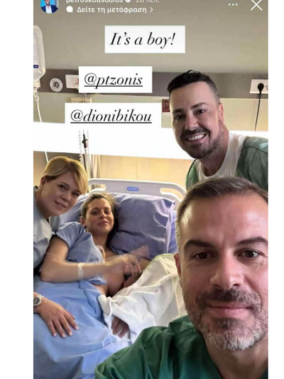 Στην πρώτη φωτογραφία που δημοσίευσε μετά τον τοκετό, ο Πέτρος Κουσουλός κοιτάει τον φωτογραφικό φακό, με την ευτυχία αποτυπωμένη στο πρόσωπό του. Στέκεται πάνω από το κρεβάτι της συζύγου του, η οποία ανακουφισμένη, ζει με τον δικό της τρόπο τις στιγμές.