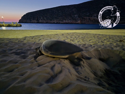 “Στον Απόλλωνα της Νάξου μια πράσινη χελώνα Chelonia mydas βγήκε να φτιάξει την φωλιά της και να γεννήσει τα αυγά της.