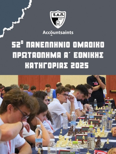 Ολοκληρώθηκε η Τελική Φάση του 52ου Πανελλήνιου ομαδικού πρωταθλήματος Α' Εθνικής, με τη συμμετοχή 34 κορυφαίων ομάδων στο σκάκι από όλη την Ελλάδα.