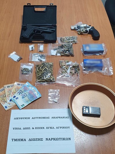 Κατασχέθηκαν μεταξύ άλλων μικροποσότητα κοκαΐνης, -1- περίστροφο, -1- πιστόλι, -316- φυσίγγια και ζυγαριά ακριβείας