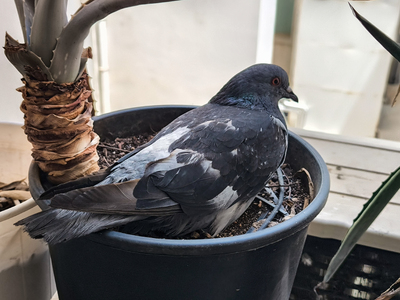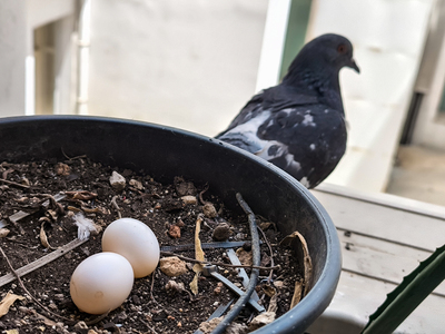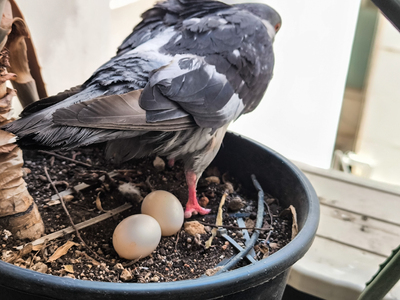 Μια περιστέρα αποφάσισε να εμπιστευτεί μια γλάστρα στο περβάζι του Κοινοβουλίου για να φτιάξει τη φωλιά της και να γεννήσει τα αβγά της