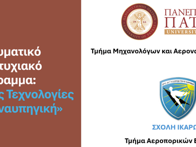 Το νέο Διϊδρυματικό Μεταπτυχιακό Πρόγραμμα Σπουδών «Προηγμένες Τεχνολογίες στην Αεροναυπηγική» (Advanced Technologies in Aeronautics) το οποίο προσφέρεται από το Τμήμα Μηχανολόγων & Αεροναυπηγών Μηχανικών του Πανεπιστημίου Πατρών και το Τμήμα Αεροπορικών Σπουδών της Σχολής Ικάρων, προκηρύσσει για το ακαδημαϊκό έτος 2025-2026, πενήντα (50) θέσεις μεταπτυχιακών φοιτητών.