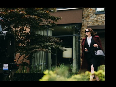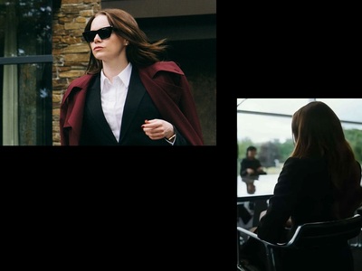 Την βλέπουμε ντυμένη ως δυναμική και επιτυχημένη CEO. Το business look της περιλαμβάνει μαύρο ταγιέρ και μπορντό καμπαρντίνα σε συνδυασμό με επώνυμα αξεσουάρ. Περιοδικά όπως η ιταλική Vogue επισημαίνουν την εμβληματική τσάντα Saint Laurent που κρατάει αλλά και τα γυαλιά ηλίου Celine. Θυμίζουμε πως ο διάσημος Ελληνας σκηνοθέτης ενδιαφερόταν ανέκαθεν για τη μόδα και έχει κάνει σχετικές φωτογραφίσεις.