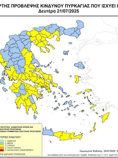 Ο χάρτης πρόβλεψης κινδύνου πυρκαγιάς της πολιτικής προστασίας