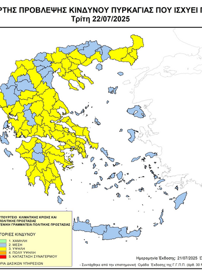 Ο χάρτης πρόβλεψης κινδύνου πυρκαγιάς της πολιτικής προστασίας