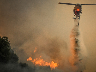 Καλύτερη είναι η εικόνα με το πρώτο φως της ημέρας της μεγάλης πυρκαγιάς στον Φενεό της Κορινθίας όπου εκατοντάδες πυροσβέστες έδωσαν ολονύχτια μάχη με τις φλόγες που έκαιγαν πυκνό δάσος.