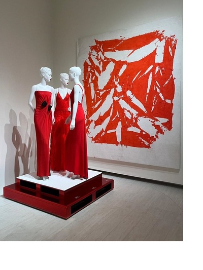 Eδώ θαυμάζουμε 50 αρχειακά κομμάτια βασισμένα στο περίφημο κόκκινο Valentino Red, στον καινούριο χώρο PM23 της Piazza Mignanelli 23. Πιο συγκεκριμένα, αποθεώνεται 66 χρόνια μετά, η θρυλική συλλογή που καθιέρωσε τον μετρ Valentino Garavani, με φετίχ το κόκκινο χρώμα και το cocktail dress σε σχήμα κλεψύδρας ονόματι «La Fiesta».