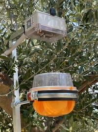 * Κάμερα υψηλής ευκρίνειας, η οποία σε συνδυασμό με μικροϋπολογιστικό σύστημα και cloud υποδομή, καταγράφει και ανιχνεύει τον πληθυσμό των εντόμων εντός της δακοπαγίδας.