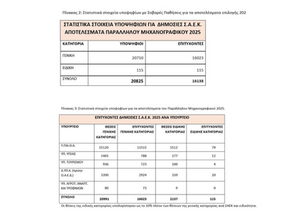 Τα αναλυτικά στοιχεία υποψηφίων και επιτυχόντων ανά Υπουργείο παρατίθενται στον συνημμένο πίνακα.
