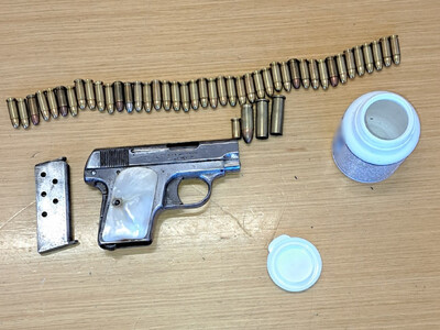 Σε σωματικό έλεγχο που πραγματοποίησαν οι αστυνομικοί στον συλληφθέντα βρήκαν στην κατοχή του και κατέσχεσαν ένα πιστόλι, με γεμιστήρα που περιείχε ένα φυσίγγιο, καθώς ένα κυτίο, που περιείχε -42- φυσίγγια, τα οποία κατασχέθηκαν ως πειστήρια.